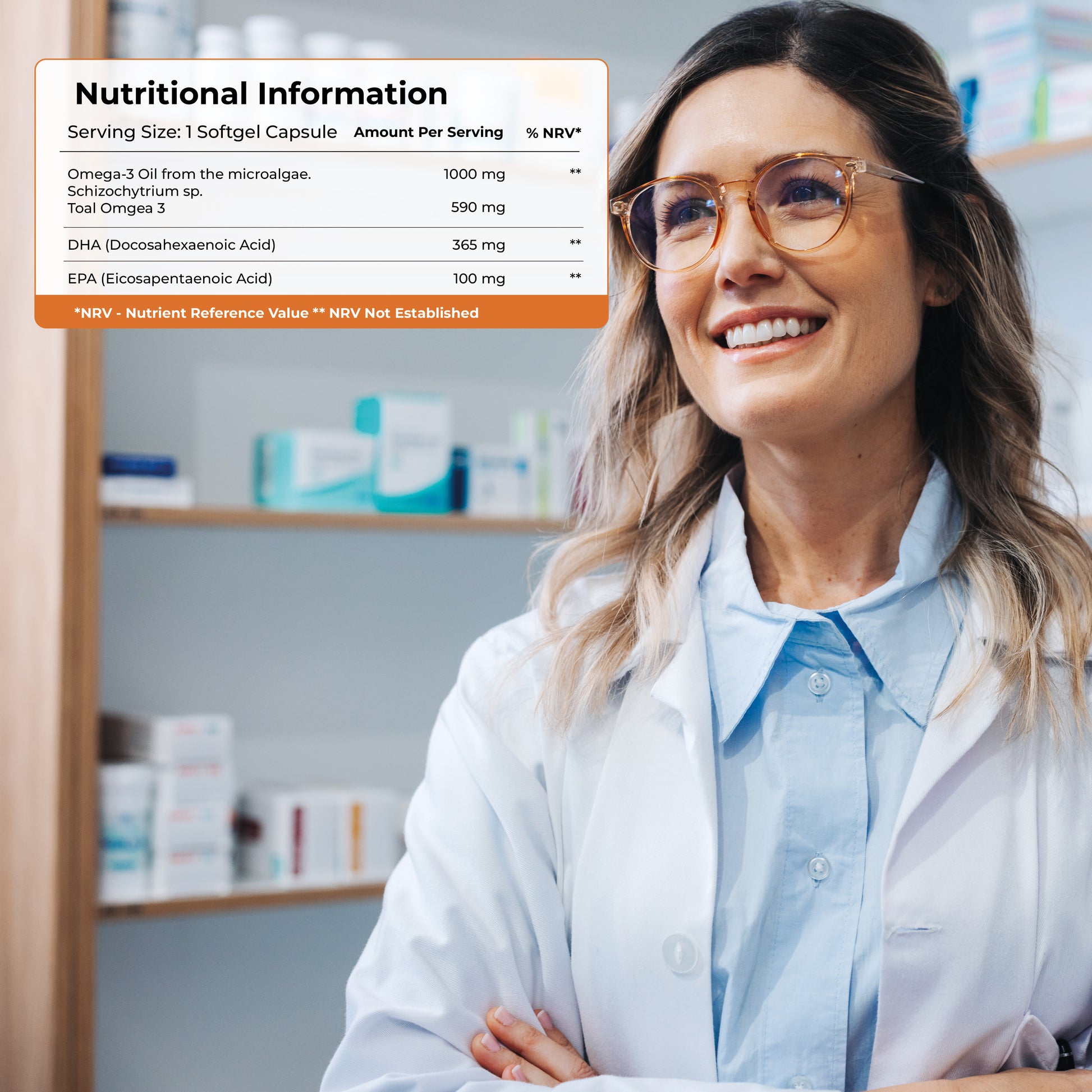 Each of our softgel capsules provide 365 mg DHA and 100 mg EPA.